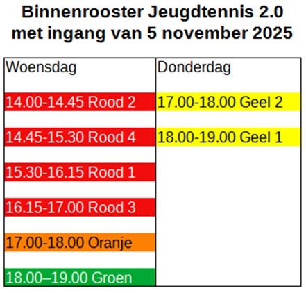 Op woensdag is de trainer Bonni Manstra en op donderdag Daphne Hardeman. De rode kids lessen 45 minuten, de oranje, groene en gele jeugd een uur.
