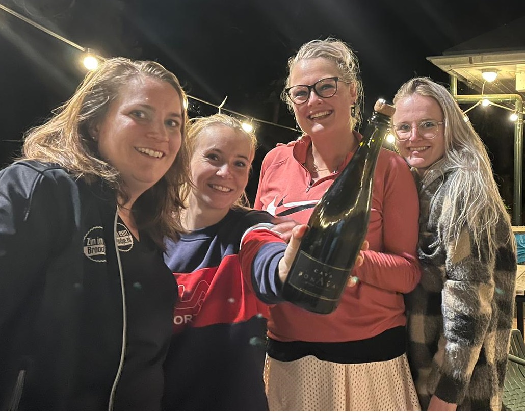 De KNLTB Voorjaarscompetitie is ten einde en kent maar liefst twee kampioenen op onze mooie vereniging! In de damesdubbelcompetitie op de vrijdagavond behaalden twee damesteams de kampioenstitel. In de tweede klasse op de vrijdagavond werd het team geleid door captain Marieke Bosman kampioen, het team bestaande uit Denise Veenman, Denise Versluis, Dominique Vrijhoef, Kelly de Bruin en Kylie den Broeder. In dezelfde klasse werd tevens het team van Amber Bordewijk in een andere afdeling kampioen, te weten Anne-Marie Blaauw, Jessica Peters, Marjolein van Noppen, Pascal van Deursen en Sascha Niekus. De champagneflessen werden door beide teams ontkurkt en de overwinningen werden feestelijk gevierd. Girl Power!