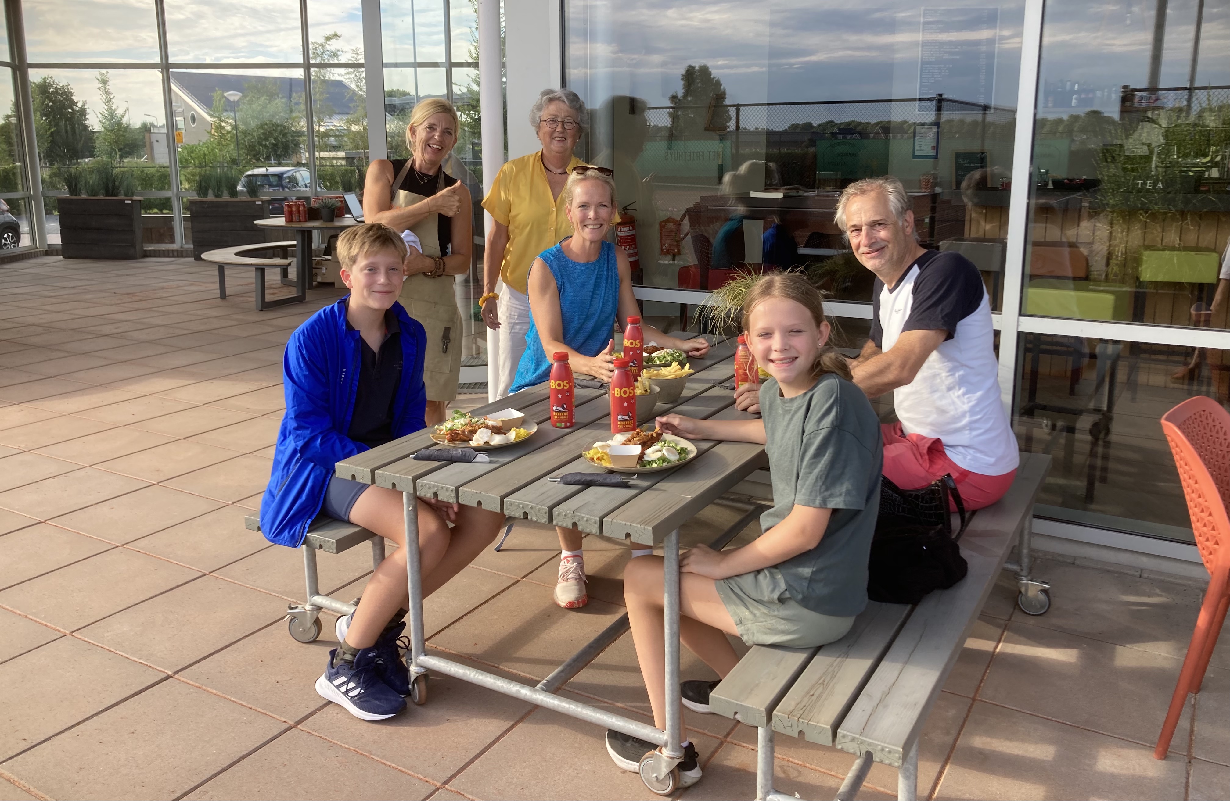 Het was druk op de baan, maar zeker ook op het terras en in de keuken. Meer dan 35 mensen genoten van de sate met sla en friet die door Janny en Hanneke werd geserveerd. En Chantal en Sanne runden de bar alsof het hun dagelijks werk is.