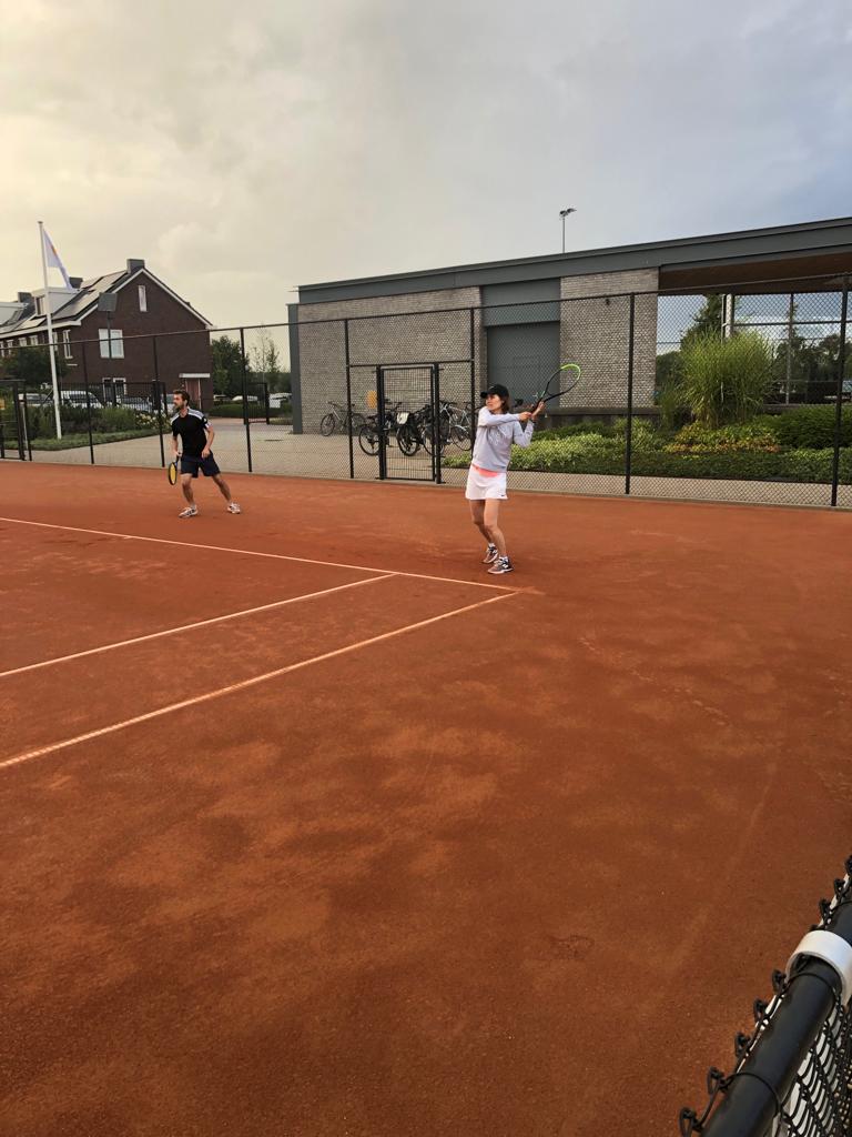 Het bleef goed weer! En hoewel de toernooicommissie alle spelers had gevraagd schone schoenen voor de hal mee te nemen, was dat gelukkig niet nodig. Alle partijen konden buiten worden gespeeld in een heerlijke temperatuur.