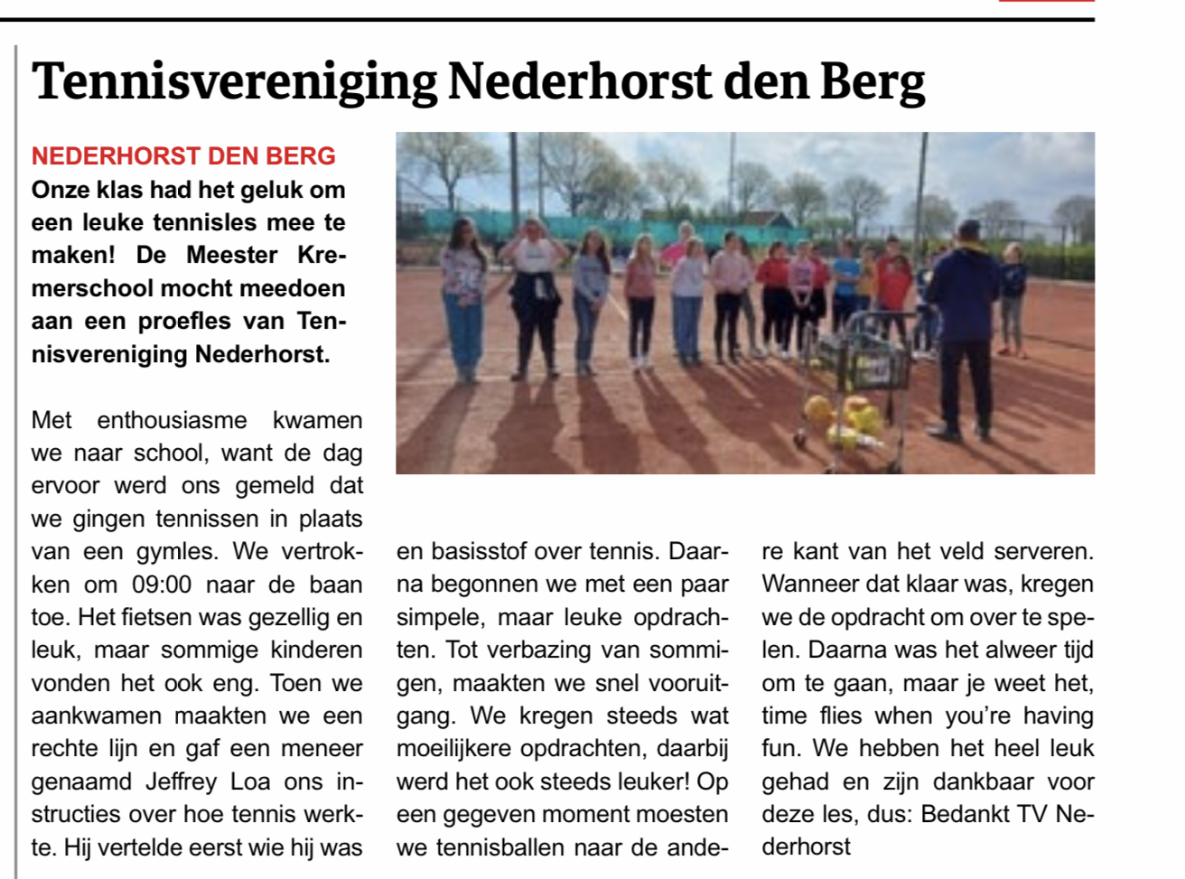 In het Weekblad Wijdemeren van 2 juni een verslagje van leerlingen van de Meester Kremerschool, zie foto.