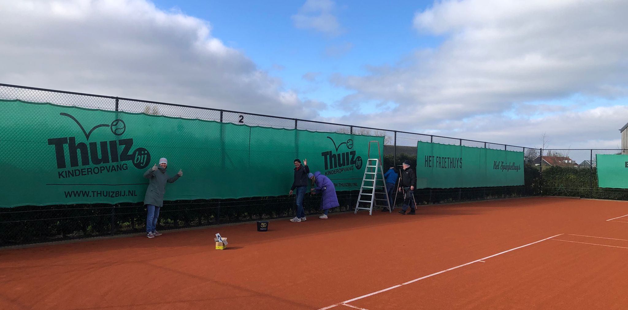 Na een regenachtige vrijdag, waardoor een vrijdagavondteam in de hal moest spelen en eentje moest uitstellen, kon Marcel zaterdag in de regen de netten ophangen. De barcommissie deed de laatste boodschappen voor de jeugdcompetitie en het vrijdagavondzondagmiddagopeningsevenement.